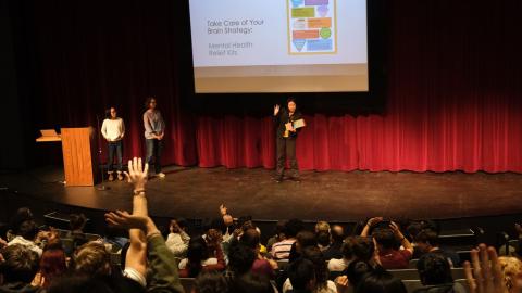 Hillyer says by engaging our students in the planning and programming of these activities helps to achieve not only their buy-in but also increase their executive functioning and helps them become better informed members of our community. Case in point, the session ended with members of the student-led Forefront club showing their fellow students mental health relief kits they created that will be available around campus to help students manage stress during test time.