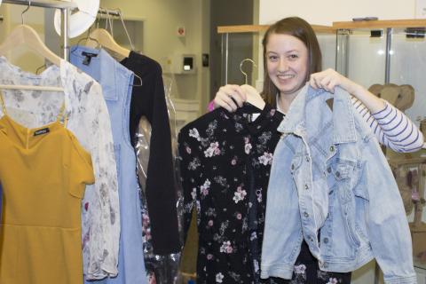 There are two major changes in this year’s fashion show. The first is that models will choose their own clothing, and, second, is the venue. The show will be in the Campus Center and Teya and Tyler say it’ll be a flurry of activity hours before the event as they transform the room from lunch tables to a platform runway. “There are so many moving parts with so many different people involved. It’s not only models, but also tech people, makeup artists, and emcees,” says Teya. “In the end, it’s going to be a much more intimate and interactive show.”